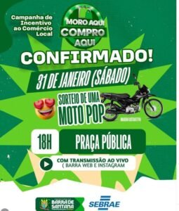 Será um grande dia de valorização do comércio local, vamos conhecer o grande ganhador da Moto Pop 0KM, e diversos brindes.