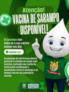 As pessoas de até 59 anos devem procurar a Unidade de Saúde mais próxima e levar o cartão de vacinação, para atualização contra o sarampo e demais vacinas do calendário vacinal.