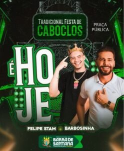 A Tradicional Festa de Caboclos acontece neste sábado (06), na Praça Pública, reunindo duas grandes atrações: Felipe Stam e Barbosinha. 🎤🔥
